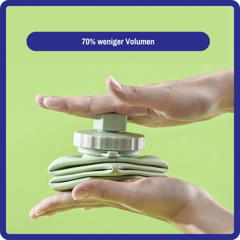 HydroFold lässt sich auf ein Minimum zusammenfalten und passt in jede Tasche – ideal für Unterwegs, Reisen oder den Alltag.