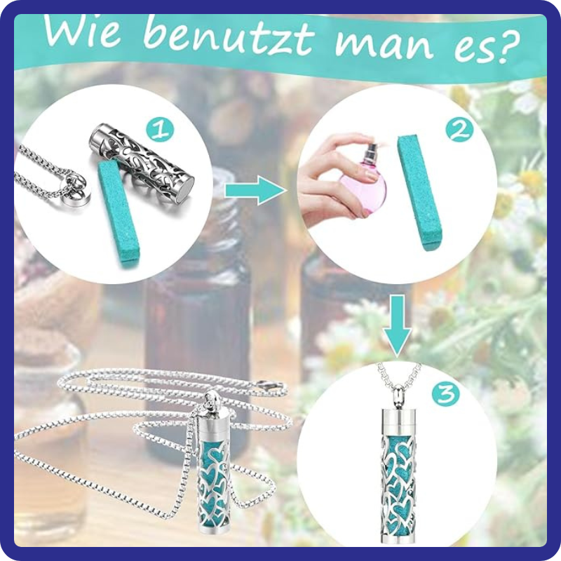 Der Anhänger ist ein stilvolles Schmuckstück, das jedes Outfit ergänzt und gleichzeitig funktional ist. Luxus, der duftet. -